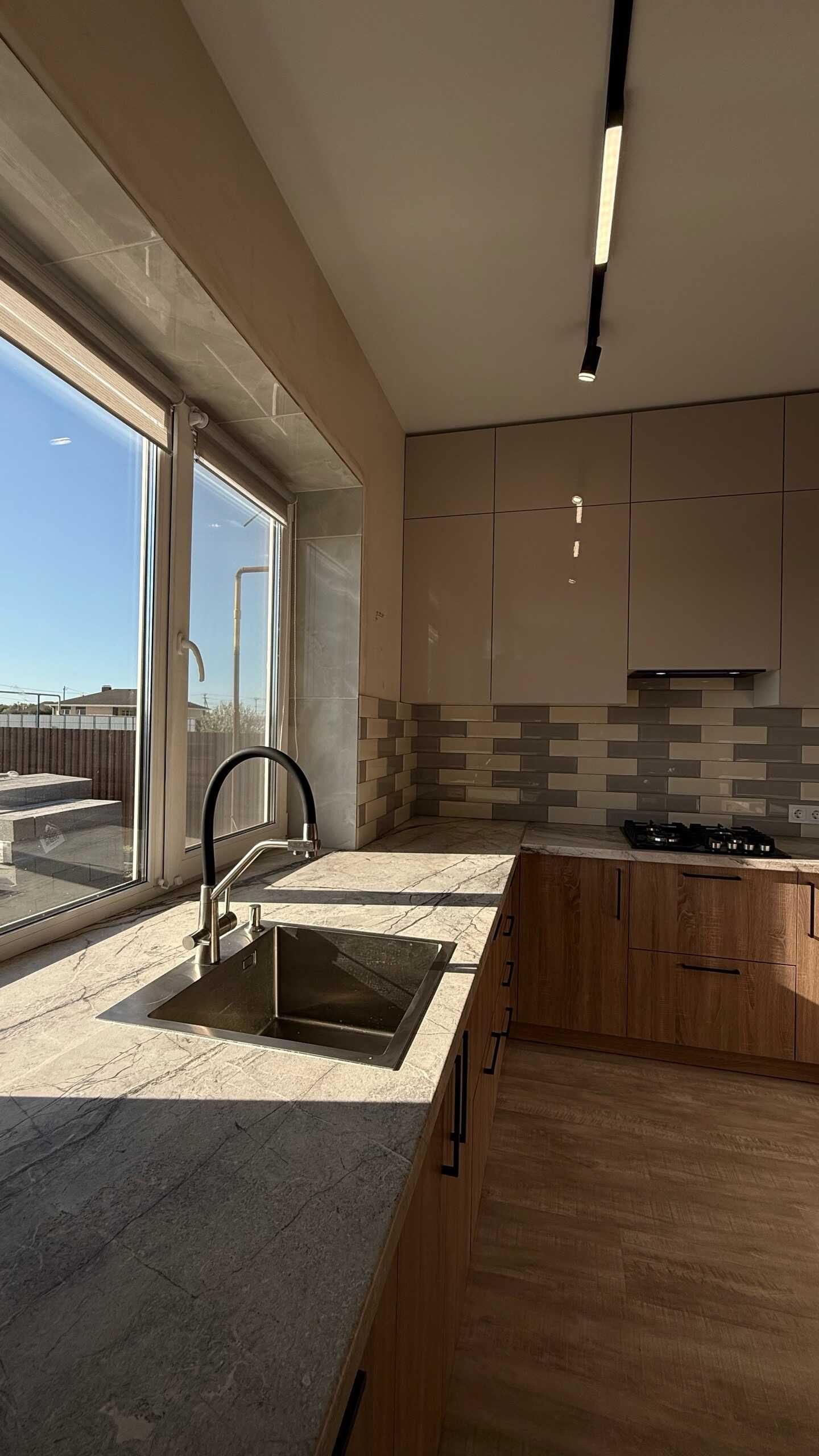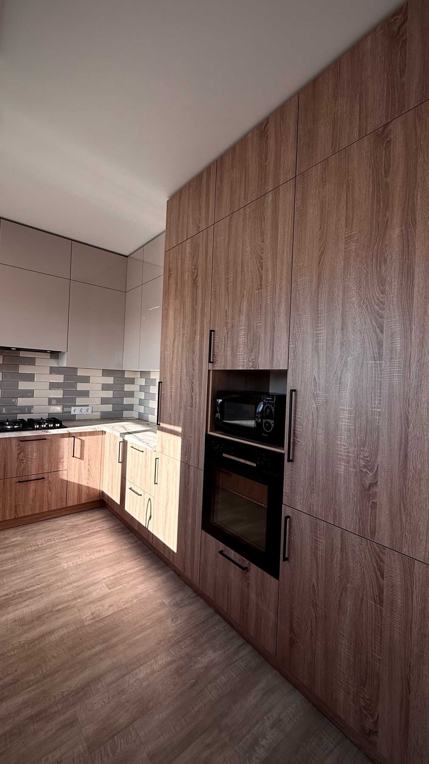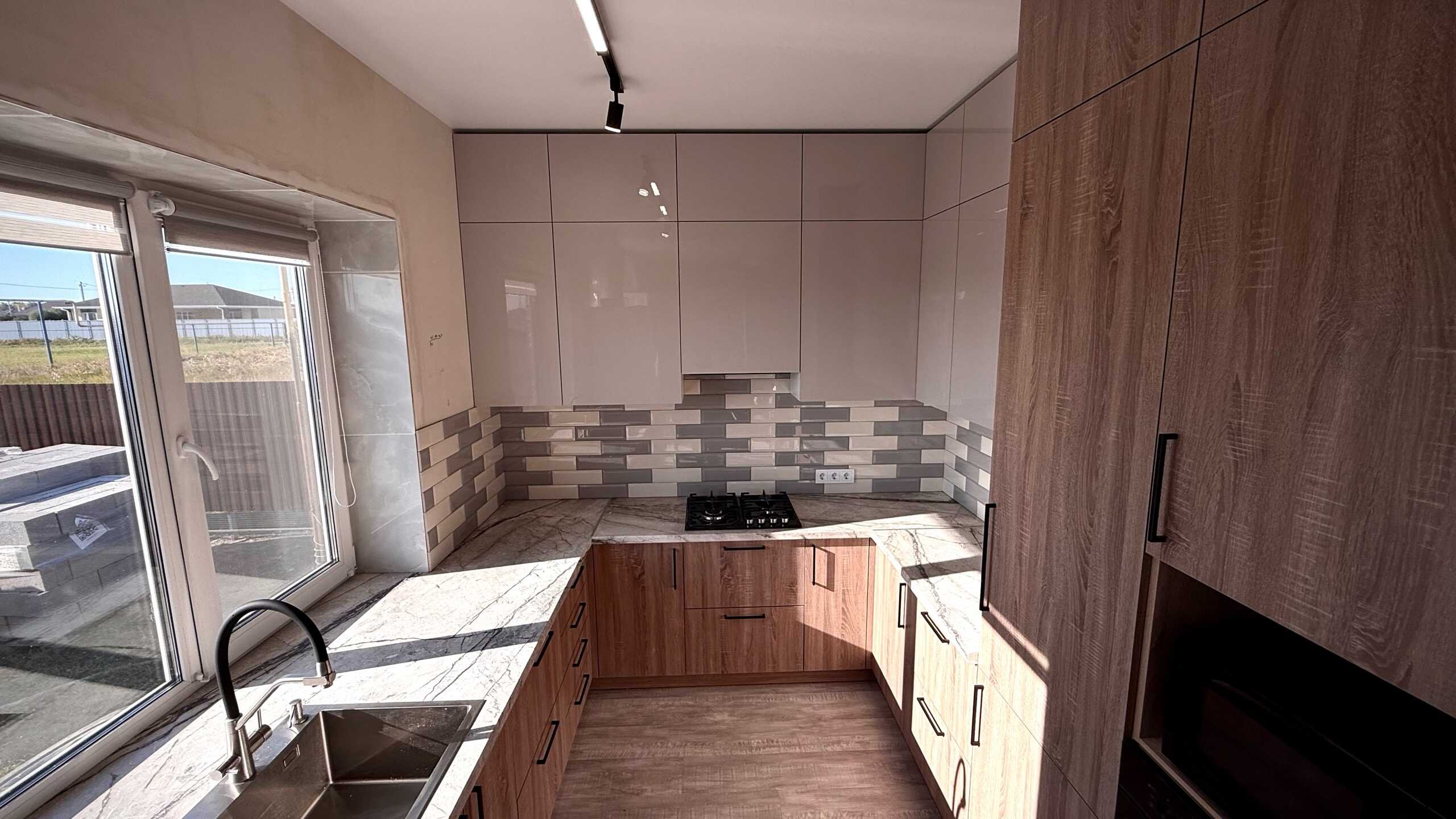 Большая кухня в частном доме — залог домашнего уюта и семейных традиций. Простор для кулинарного творчества, общения и совместных ужинов. В такой кухне обычно располагаются: кухонный остров — удобное место для приготовления пищи и общения, шкафы и полки — для хранения посуды, продуктов и кухонных принадлежностей, обеденный стол, стулья и современная техника.