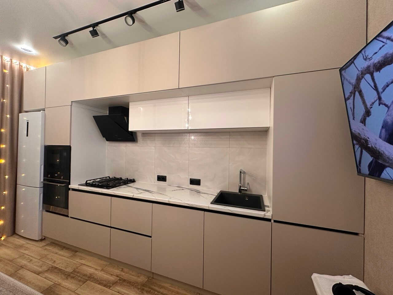 Новой квартире необходима современная кухня. Место, где сначала на новоселье, а потом и в будущем за одним столом будет собираться семья и друзья. Стильные шкафы, удобные столешницы, современная техника (плита, холодильник, посудомоечная машина) и функциональный обеденный стол. Эстетика и удобство создают атмосферу тепла и уюта, делая кухню не только рабочей зоной, но и местом для общения и вдохновения.