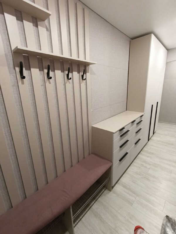 Здесь обычно размещают компактный шкаф для одежды и обуви, зеркало, которое визуально расширяет пространство, и небольшую скамью для удобства при обувании. Стеллажи или полки для аксессуаров и ключей помогают поддерживать порядок.